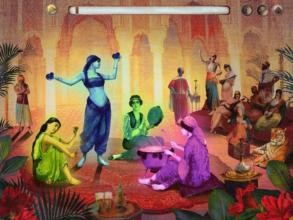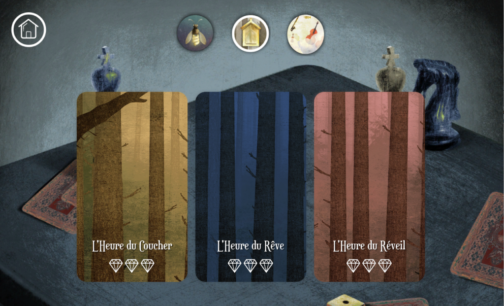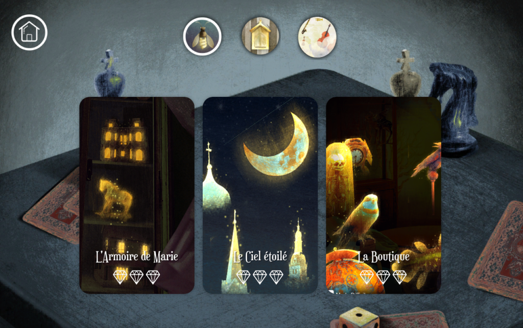 Avant d’accéder au tout premier tableau vous avez en plein écran un objet lumineux qui apparait, en le touchant il délivre un son. Un autre objet vous ait proposé à toucher ainsi de suite jusqu’à ce que le tableau entier de l’armoire de Marie apparaisse en entier à votre écran.