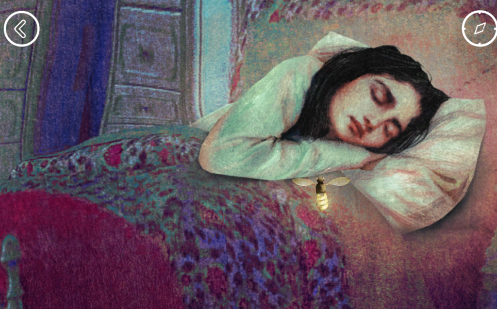 Une fois l’énigme résolue, au premier tableau une luciole sort de lampe, maintenez le doigt appuyé sur la luciole pour faire avancer l’histoire.