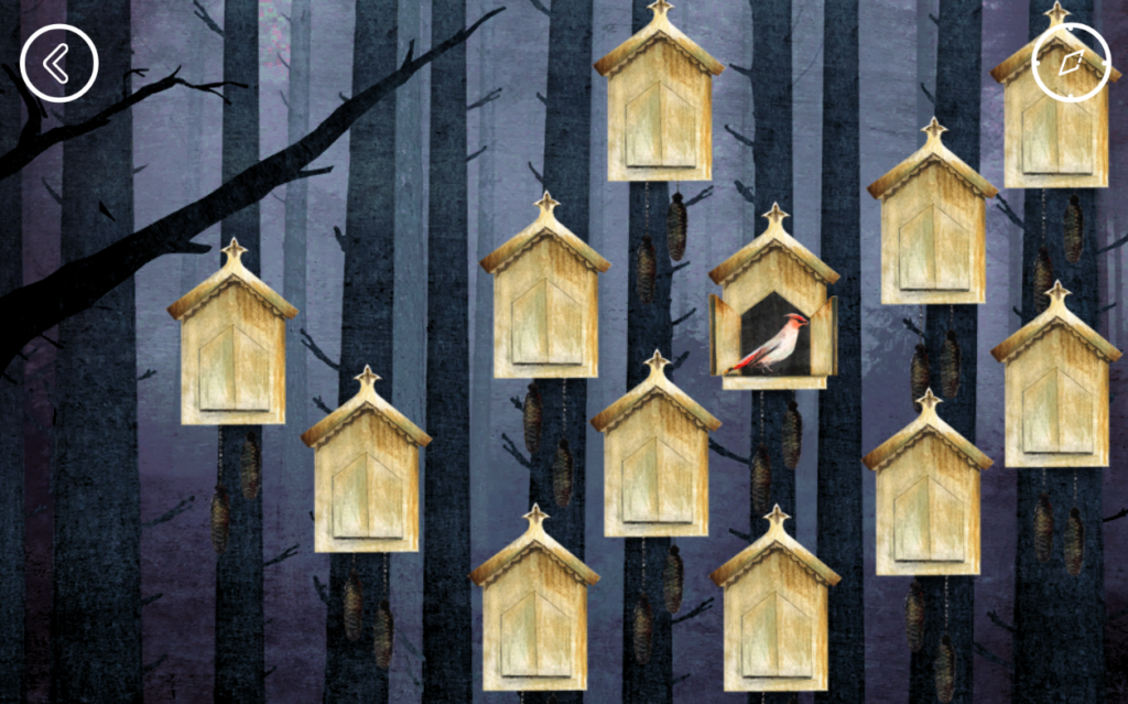 Le jeu des oiseaux est un jeu de memory… musical ! Vous devez reconstituer les paires de mélodies cachées dans les niches.