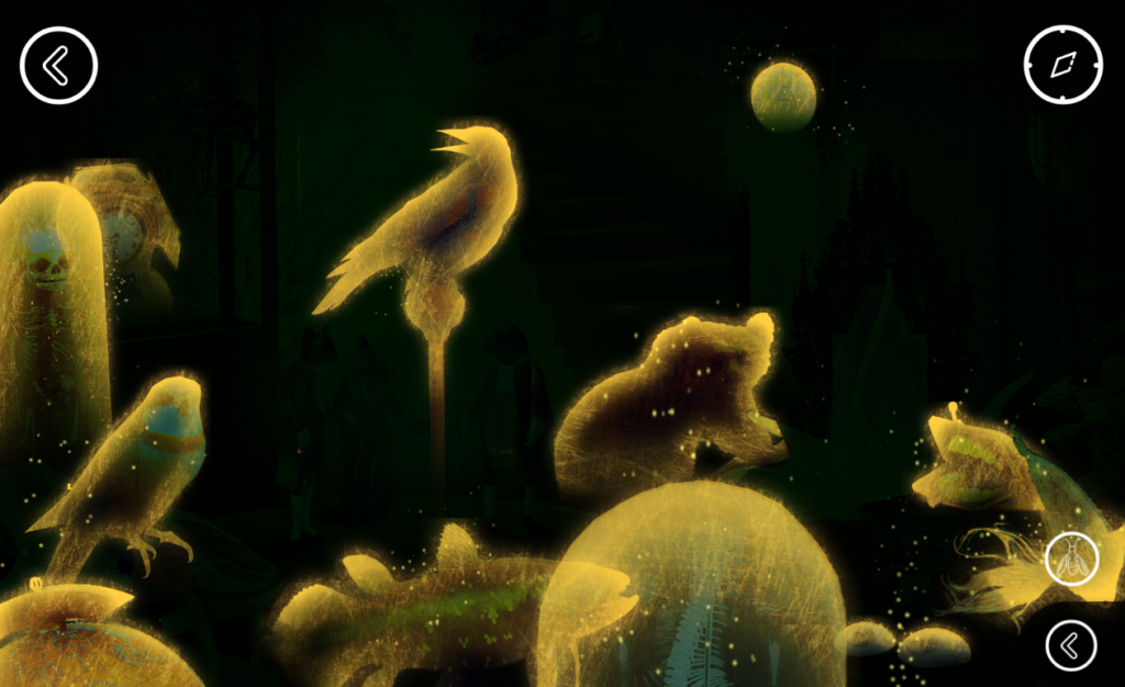 Indice : Au fil de l’histoire trois énigmes sont à résoudre : trois tableaux interactifs où vous devez trouver le code qui déverrouillera la pièce pour accéder à la suivante. Le bouton luciole en bas à droite est votre guide, c’est lui qui vous donnera l’indice qui vous permettra de résoudre cette énigme, écoutez-le avec attention et retenez sa trace visuelle pour la reproduire à votre tour.